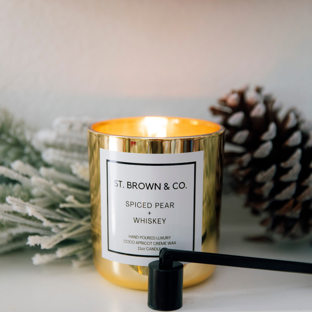 Each candle is hand poured in Santa Ana, CA using coconut apricot wax, non-toxic fragrance oils, and features a crackling cherry wood wick. MD Alumni owned business, class of 2013!